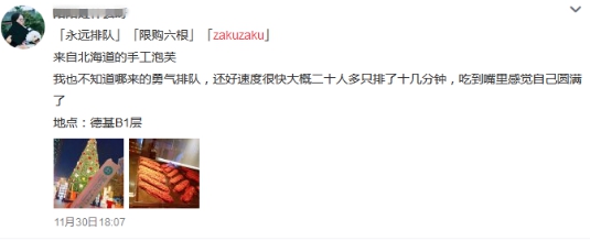 采用产自北海道新鲜牛奶精炼而成的ZAKUZAKU冰淇淋、外酥脆内香滑的ZAKUZAKU泡芙相继在东京、台湾、南京、厦门等地亮相,所到之处无不掀起一股全民排队的热潮。“排队王”的称号果然名不虚传。不过,ZAKUZAKU的人气可不仅仅体现在排队上,在SNS上也是话题不断。在南京地区,ZAKUZAKU更是吃货们必经的美食打卡圣地。怎么样?大家的内心是不是蠢蠢欲动了?那就赶紧行动,即使是排长队,ZAKUZAKU也绝对是你不可错过的美味~
