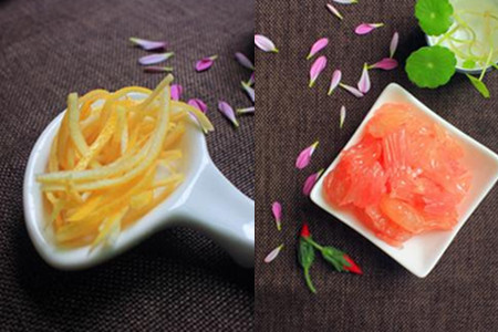 西柚的皮非常薄,剥皮的时候要将里面的白瓤去掉留下橘色的外皮,然后尽量切小一点。西柚的肉比较柔软,取肉的时候要小心一点,不要用力过大将肉捏成泥。