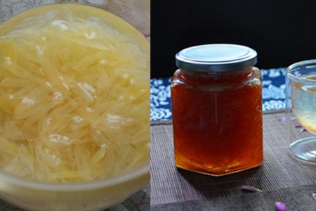 它需要的食材有蜂蜜、西柚和冰糖。西柚是一种比较小的柚子,肉质鲜红,口感偏酸。挑选的时候尽量选择外皮偏橘色的西柚,这样成熟度高一点,口感也会稍微好一点。蜂蜜就选择含糖量少一点的蜂蜜,这样更加健康,而且好喝。