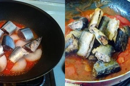 之后再把秋刀鱼放进锅里面煮一会儿,然后再放一点糖和胡椒盐,大概用小火炖半个小时左右,就可以出锅装盘了。