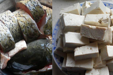 食材:青鱼800克、豆腐500克、豆瓣酱、辣椒酱、白糖、盐、油。