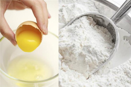 第一步:我们拿出一个空碗,把从超市买来的面粉倒进去;然后拿出两个蛋打进一个空碗里,打蛋的时候注意不要把蛋壳也敲进去了,之后再把蛋清和蛋黄分离开来。教大家一个简单分离蛋清和蛋黄的办法:在家里面找一个空的矿泉水瓶,紧接着把矿泉水瓶轻轻地捏一下,再把它的瓶口对着碗里的蛋黄一吸,蛋黄就完整的被吸进瓶子里了而蛋清依旧会在碗中。
