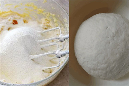 下面我们就把分离出来的蛋清倒进之前的面粉中搅拌,搅拌的时候放入两勺蜂蜜、一勺糖、适量的酵粉、牛奶,搅拌均匀后加入适当的纯净水,注意水不能是水管里直接接的自来水。把和好的面团放在一边发酵,一定要留出充足的时间让面粉发酵不然之后做出来的面包不会蓬松酥软。