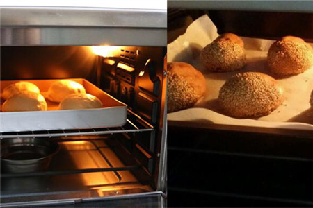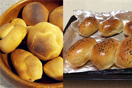 这样,一盘美味的手工烤面包就完成了,在把烤盘拿出烤箱时注意不要把手烫伤了,可以戴一双专门烤面包时端托盘的厚手套保护一下。喜欢吃芝麻的朋友还可以在托盘进烤箱前放几粒芝麻在面团上,这样烤出来的面包会更加的香。