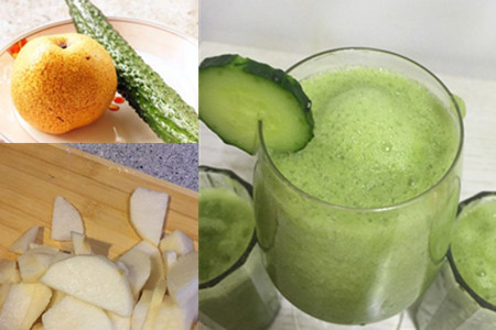 将黄瓜和雪梨都需要先用清水冲洗干净,然后用刀将它切成合适的块状,这样榨汁的时候比较容易。