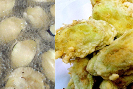 取几个鸡蛋,放进大碗里打散,然后倒入少量的淀粉,加清水做成面糊。锅底倒油加热,手放在油水上面感觉烫时,就可以用茄子裹上面糊开始炸了。注意油温和时间,等到外层变成金黄色,我们就可以捞出来吃了。