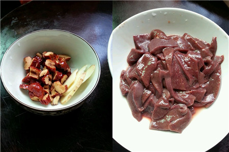 同时,可以把红枣从中间切开,把里面的核取出来。需要注意的是,红枣的皮不要去除,红枣里面大部分的营养都在皮里面。然后猪肝差不多就准备好了。然后把猪肝放在冷水里面,用大火过一遍,把里面的油脂煮出来。然后把里面的冷水和油道出来。然后再把猪肝放在油炒一会儿,在加入水,在放进去盐和油等,在快要煮开的时候加入红枣就可以了。