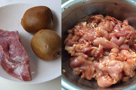 1、准备的食材有猕猴桃、猪肉、鸡蛋、淀粉。