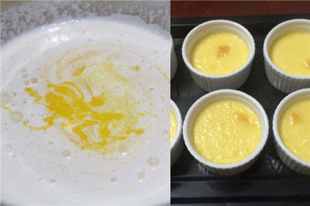 除了刚才所说的焦糖布丁做法,我们还可以制作法式焦糖布丁,其实法式的焦糖布丁就是放在烤箱里面去烤,而且颜色有一点不同,因为是放在烤箱里面去烤的,所以布丁的上面会有一层金黄色的,总之看起来非常的好看。