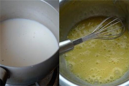 在牛奶加热的同时我们就可以准备下一个步骤,根据牛奶的多少来制定我们鸡蛋的数量,如果是牛奶比较多的话,就可以准备两个鸡蛋,然后把鸡蛋放在碗里面用鸡蛋搅拌器把鸡蛋打散,之后把鸡蛋液倒在牛奶里面搅拌均匀就可以。