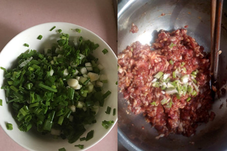 4、把生姜洗干净,用刀切成碎末状。葱剪掉须部、摘掉上面的黄叶,放在清水里清洗干净后,用刀切成碎粒。
