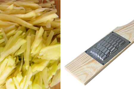 第一步就是处理土豆了,因为土豆的泥块比较多,所以清理的时候多注意一些。另外,还可以用工具削皮,这样也就不用担心污垢洗不干净了。然后就是切土豆丝了。这是比较关键的一步。因为只有你真的切成了丝,做出来的菜才会好吃。这很考验刀功。不过不用担心,有专门的切土豆丝的工具,如果家里需要的话可以常备一个,很有用处哦。