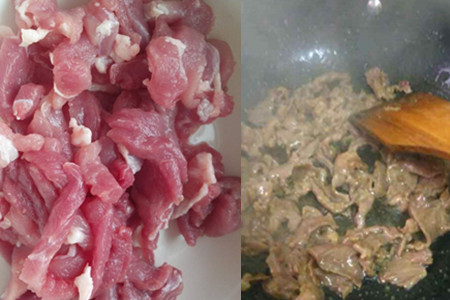 第二步就是处理瘦肉了。这一步比较简单,只要把肉清理干净,用热水洗一下,然后切成小块就可以了。这时候还可以准备一些干辣椒,切成细细的小丝即可。在准备一些葱末、姜末等,主要是用来提味的。这样一来,所有的原料也都处理好了,也就可以放心地进行下一步了,也就是开火上锅啦。不用着急,一步一步慢慢来。