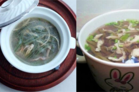 莼菜鸡丝汤是一道非常营养美味的美食,因为莼菜中本来就含有很多的营养,鸡肉也是一种营养比较丰富的肉类,将莼菜和鸡丝做成一个菜,就做成了既美味可口,又营养丰富的莼菜鸡丝汤。莼菜鸡丝汤在在一般的餐馆中比较不容易见到,所以想吃的朋友们也可以自己在家里制作,下面就为大家介绍莼菜鸡丝汤的制作方法。