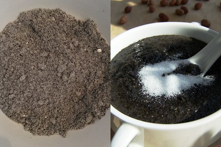 其做法还蛮简单,步骤一:先把黑芝麻碾成粉末状,然后核桃去壳,剥好备用。