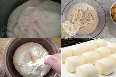 3、面团要大力多揉搓,一直揉到出筋为止。这一点不能省力省时,揉搓得越充分的面团做出来的馒头会越松软。