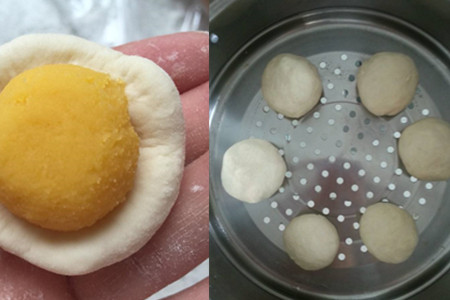 step21. 用面皮包住奶黄馅。