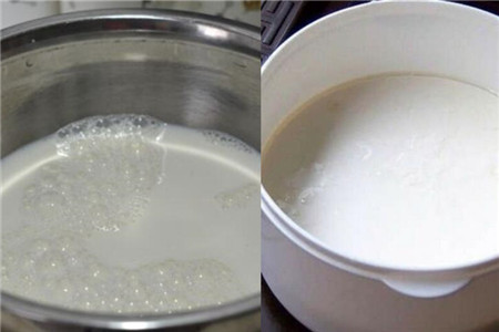 把煮开之后的牛奶倒在干净的盆子里面,但是盆子在洗干净之后尽量的还是先用开水烫一下,然后再把牛奶倒进去。把装有牛奶的盆子放在冰箱里面冷冻一段时间就可以了,这种做法就根本不需要用到酸奶机也可以轻松的完成。