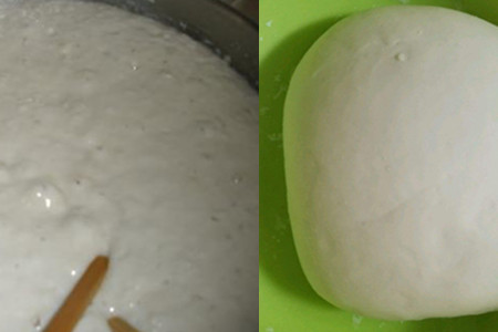 馒头的做法很简单,关键在于这个面粉怎么发酵,因为益生菌的原因,面粉会改变本质,所以差之毫厘失之千里。发面用的酵母就是超市里可以买到的面粉发酵用粉,打开包装是黄褐色的颗粒,我们事先用温水化开酵母,待溶于水之后慢慢倒进面盆里就可以了。酵母的用量非常关键,放的少了面团就不会变大,放多了面团就会发酸,影响口感。