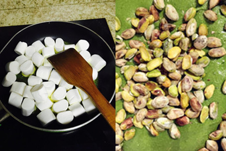 一、食材准备。奶粉一百二十克、无盐黄油五十克、食用盐两克、花生或者其他坚果共计三百克、原味棉花糖三百克。如果你想做抹茶或者可可口味的,可以再加入抹茶粉或者可可粉十五克。