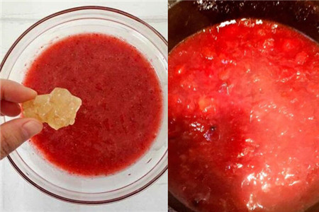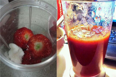 洗干净的草莓就可以用到将其去掉根部,可以用刀来辅助我们去掉根部,这样可以保证果酱的口感更佳。接着将已经去根的草莓果肉放进榨汁机里面,将果肉全部都搅碎。在搅拌的时候要注意,为了让草莓果肉更加顺滑,我们在搅拌的时候要往榨汁机当中加入少量的清水,这样就可以让果肉更加的顺滑,我们在吃果酱的时候也能够有一个更好的味觉体验。