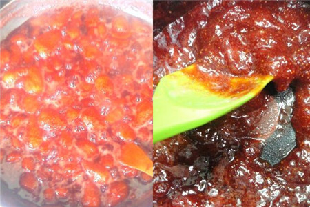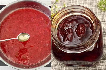 沸腾之后转为小火继续烹煮,在煮的时候不要忘记用勺子搅拌,防止糊锅。锅中的果泥逐渐变得粘稠的时候,我们就可以将果肉倒入大碗里,这个时候要静静的等待其自然晾凉。在果肉已经处于温热的情况时,加入几勺蜂蜜,增加果酱的保质期,同时也可以让果酱更加美味。调制好的果酱密封冷藏保存,想吃的时候直接拿出来涂抹在面包上即可食用。