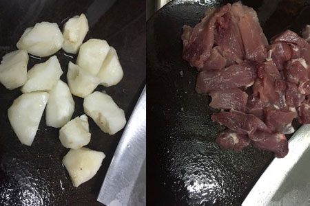 马蹄切粒,而猪肉需要洗干净后切片。猪肉的切片不需要太薄,稍为厚些也没有问题。汤内加入马蹄除了能够增加口感,使口感更加清爽外,也能够清热毒,真是一举两得。