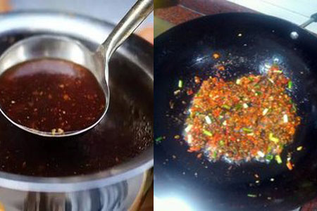 第三步,往第二步炒好的油里再加一点水淀粉,让这个酱汁更加浓郁。