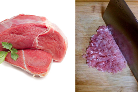 再将肉洗好,在剁成肉沫,剁得越细越好,方便后面的其他几个步骤。