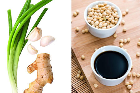 其次,准备生姜、蒜、辣椒、八角、香叶等,将其剁成小碎块,放入已经剁好的肉里面。再放入豆瓣酱、食用盐、生抽,搅拌均匀。这个步骤需要用手直接接触到肉,所以为了卫生,一定要戴上塑料手套。