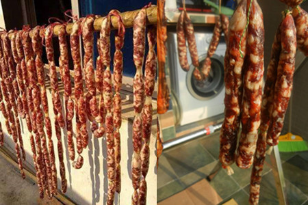 二、腊肠晾晒的时候要选择背阴的阳台,一定不要有太阳直射,不然就会被晒馊了,浪费食材。阳台要开着窗户通风,自然风干的口感较好。