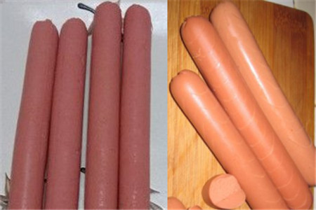 第一步:我们把买来的火腿肠包装撕掉,然后用刀在火腿肠上面划出一道一道的刀口,注意刀口不要划得太大,不然炸的时候容易炸烂。