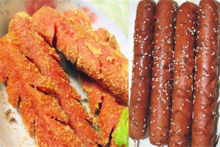 做油炸火腿肠需要的食材有:火腿肠、孜然粉、菜油、芝麻