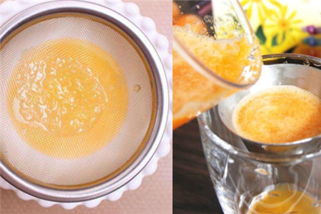 如果家里面有孩子或者是老人一起喝,可以用过滤网把榨出来的橙汁过滤一下,把里面的固体杂质都过滤出来,因为他们肠道的消化系统不是很好,不能完全消化橙汁里面的杂质,所以要过滤出来。