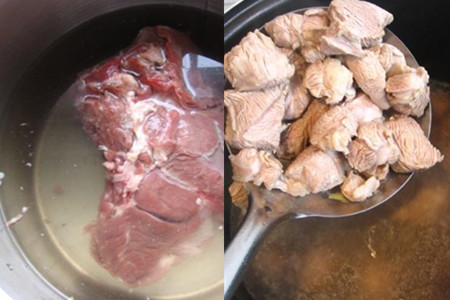 买回来的羊肉放清洗干净,再用清水泡30分钟,把羊肉的部分血水泡出来。将羊肉的肥油去掉,留瘦肉部分。将羊肉切成小方块,煮锅上灶,加入适量凉水,大火煮开,将切好的羊肉下开水中焯一下,焯至羊肉变白色后捞出,用温水冲洗一下。