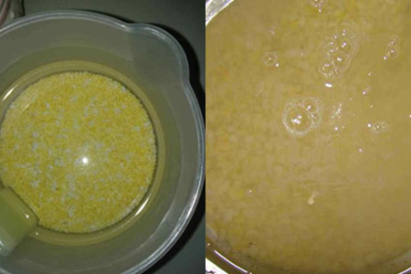 玉米碴子粥并不像我们想象的那般容易制作,在煮粥之前,我们需要把玉米碎粒放在冷水里浸泡一会儿,这样玉米就会吸水,质地就不会那么坚硬了,也容易煮熟。而且大家在做的过程中,一定要注意的是,我们煮粥的时候要用开水,一般冷水下锅时,玉米还没有熟就会烂糊了,然后再烧开就会粘锅,容易煮糊了。