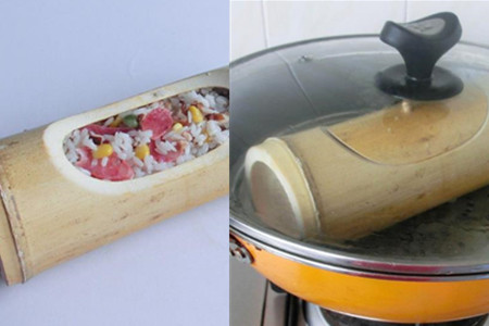 竹筒清洗干净,把拌好的米和配菜装入竹筒。蒸锅上灶,加入适量水,将竹筒下蒸锅,加盖,大火蒸30分钟。配菜不一定要按照上述的,可以换成自己喜欢吃的。蒸制竹筒饭的时间需要根据选用的竹筒大小来增减。