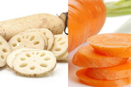 买五花肉的同时别忘了买莲藕和胡萝卜,胡萝卜可以少买点,因为它主要是起个调色作用,将肉、莲藕、胡萝卜三种材料洗净剁碎,嫌麻烦的话可以切成小块,扔进料理机中。