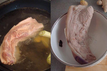1、朋友们要从菜市场购买肥瘦相间的一块猪肉,尽量选择五花肉或者三花肉,这样煮出来的猪肉味道才更香。如果用五花肉的话,吃起来肥而不腻,味道特别棒。之后朋友们要将五花肉洗干净,并准备好葱段、大料以及姜片等。将水烧开之后,将猪肉放进入并去除血沫。