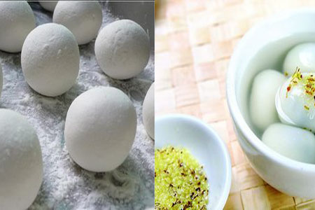 然后还有一种汤圆是没有馅的,住这种汤圆的时候就可以加很多种食材了,可以加酒糟,或者是蛋液,或者是紫薯,各种各样新奇的食材都可以和这种汤圆搭配出完美的味道。