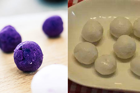 做好汤圆之后,朋友们可以将其放在冰箱中储存。想吃的时候就拿出来用沸水煮开,这样就能吃到奶香四溢而且非常软糯香甜的紫薯馅的水晶汤圆了。