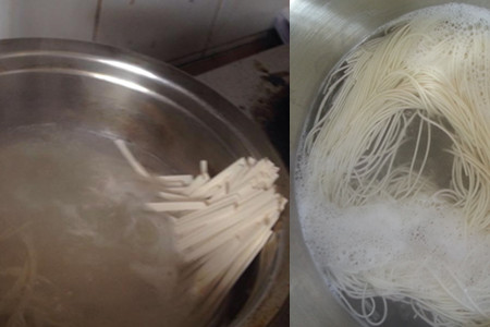 第七步,煮开一锅白开水,然后把挂面放到水里面去煮熟,然后再把挂面给捞出来,沥干水分。