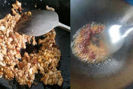 第五步,往水里面倒一些豆瓣酱,或者是没有豆瓣酱的朋友也可以选择用甜面酱来代替。