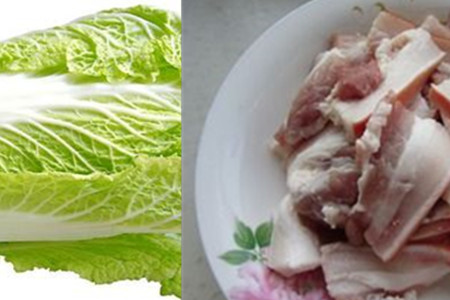 第一步:准备一颗大白菜、红薯粉条,猪肉建议大家选择五花肉,因为全部都是瘦肉,口感是比较柴的。将新鲜的五花肉切成薄片状。