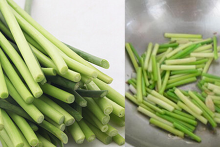 第一个步骤:选择新鲜的蒜苗,那么什么样的才是新鲜的呢?挑选的时候,大家可以用手去折断一下,如果是比较容易掐断,那就说明比较嫩了,不然就拥有了大量的粗纤维,口感很差。