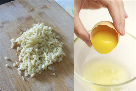 第二步:拿一个大碗把切成颗粒的蘑菇和肉末放在一起,然后在里面加入适量的姜蒜粒和一个鸡蛋,用筷子搅拌均匀;如果筷子使不上力的可以把手洗干净用手搓揉,家中的小朋友不喜欢吃姜蒜的话可以不放。