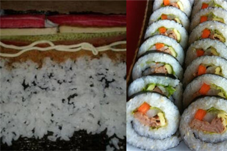 其实我们除了利用紫菜来煮汤以外,我们还可以利用紫菜来做紫菜包饭,其实这种紫菜包饭就是平时我们所说的寿司。但是如果想要紫菜来做紫菜包饭的话,那么我们就必须买专门用来做包饭的紫菜,因为专门用来做包饭的它比较大。