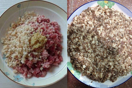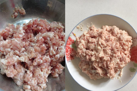 大家如果不太会剁猪肉,大家可以直接在市场把猪肉搅拌成为猪肉碎。但是自己剁碎的猪肉会好吃一点,直接机器搅拌的猪肉会比较容易碎开。猪肉切碎之后就可以在里面放入姜末,酱油,食用盐以及其他调味料了。