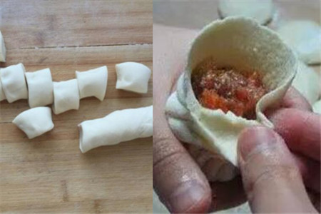 第三步,把粉条用热水泡软,切碎。把碎的粉条倒入刚才拌好得肉馅中,然后再放入适当的调料,充分搅拌均匀,放在一边备用。