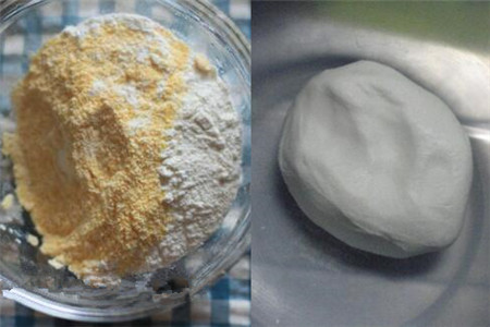 第一步,我们先制作面皮,就是包子最外面那层面皮。在超市购买专门制作面皮的面粉,在面粉中添加适当的泡打粉把它们和均匀,把面粉用水和均匀,水要慢慢的少量少量往里面加,把面团不断地搓揉,然后把面团放进盆里面,用保鲜膜封住,发面两小时。